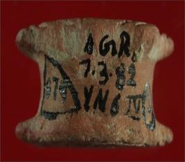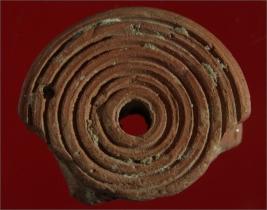 | Description / विवरण | Trench YN 6, Qdt 4, layer 2, depth 155 cm It is a spindle made of terracotta. It is in regular shape. A hole is passing through it. There is some circular incised lines on each sides and some space between both the margin. Surface is smooth and colour is brick brown. |
