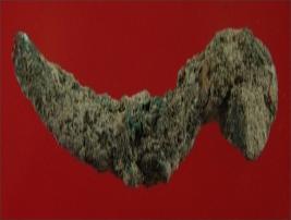 | Description / विवरण | Trench XF 5, Qdt 2, layer 1, depth 100 cm It is a copper nail. Badly deformed and patina is present on it. |