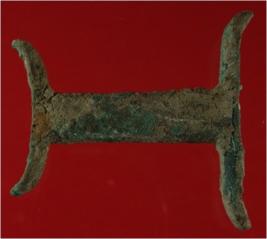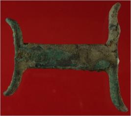 | Description / विवरण | Trench XF 3, Qdt 1, layer 2, depth 960 cm It is a copper clamp . Hard patina is present with dust. Badly deformed. |