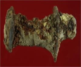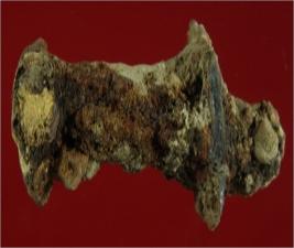 | Description / विवरण | Trench XF 2, Qdt 2, layer 22, depth 1150 cm It is an iron nail. Badly deformed and corroded, knob is present on it. |