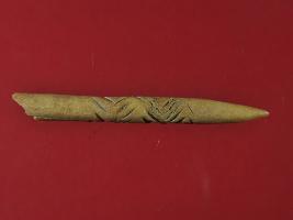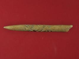 | Description / विवरण | Trench XO 6, Qdt 2-3, Section Scraping, depth 165 cms It s a bone point made of bone. One end is sharp and other is damaged. Surface is decorated with some incised lines. |
