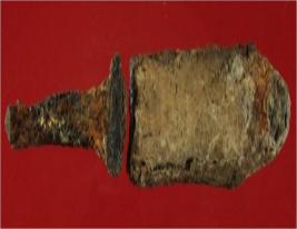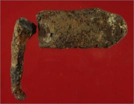 | Description / विवरण | Trench XF 3, Qdt 1, layer 23, depth 1280 - 1300 cm It is an arrow head of iron, broken in two pieces. Badly deformed and corroded. |