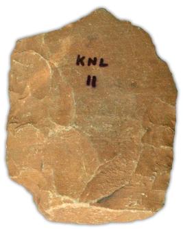 | Description / विवरण | Hand axe made on rectangular flake with thick butt end and broken functional edge, straight sides, retained prepared platform at the butt end, multiple scars on the dorsal side and chipping marks on the ventral side at the functional edge. |