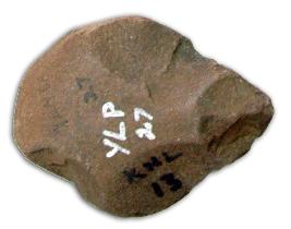 | Description / विवरण | Spear shaped hand axe made on thick flake having pointed functional edge and semi-circular butt end slightly broken at one side flake scars all over the body except at the butt end. |
