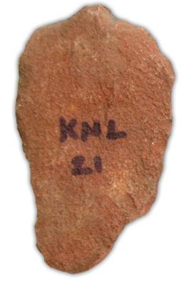 | Description / विवरण | Scraper made on flake with thick edge on one side and sharp edge on the other, thick medial rib on dorsal side and bulb of percussion on the ventral side, retouching is seen on the functional edge. |