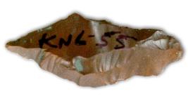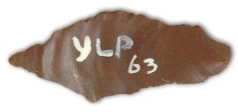 | Description / विवरण | Leaf shaped arrow head with thick medial ridge and long flake scar, pointed top with broad blunt tang, retouch on lateral sides, diffused bulb rings on the ventral side at the distal end. |