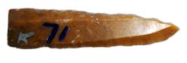 | Description / विवरण | Untouched triangular shaped flake with long flake scar extended from top to distal flat end, serrated edge on one side. |