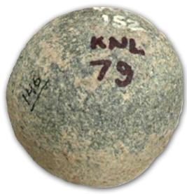 | Description / विवरण | Sling ball made on white sand stone with pecked body. |