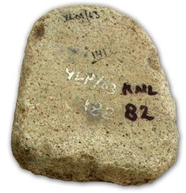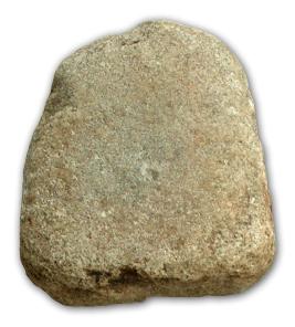 | Description / विवरण | Broken rubbing stone made on flat flake, well pecked and grinded on one side, only pecked on the other side, use marks on the functional side. |