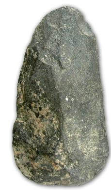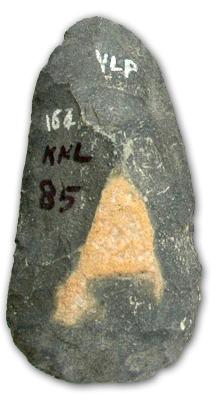 | Description / विवरण | Triangular axe with blunt butt end and slightly concave cutting edge, retained partly pebbly cortex surface, elliptical in its cross section, flake scars on the body, use marks on the functional cutting edge. |