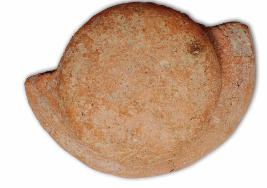 | Description / विवरण | Broken red ware dabber with top circular handle and broad concave functional base. |