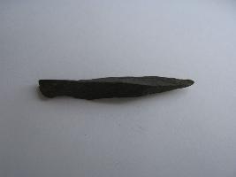 | Description / विवरण | The pecular tools having prism like projection and narrower towers the top end .All the 3 edges are very sharp.Tip is broken.colour is black. |
