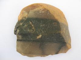 | Description / विवरण | Cleaver is made from a flake on a pebble. Cortex is present. On back side. Only 3 flakes are removed from it.Cutting edge is retouched. Bulb of percussion is present tissure and undulation mark is noticed. |