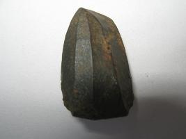 | Description / विवरण | A fluted core in black chert. Eight number of blades have been removed from it through punching techinque. Other side is uneven. Chipping is noticed on the other side. |