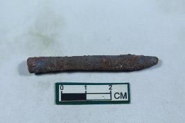 | Description / विवरण | Fragmentary nail with blunt head having rough surface. |