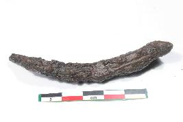 | Description / विवरण | Fragmentary incrusted Nail with curved end having rough surface. |