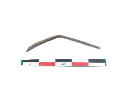 | Description / विवरण | Fragment of a nail which is bend in mid portion having rough surface. |