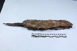 | Description / विवरण | Fragmentary spear having rough surface. |