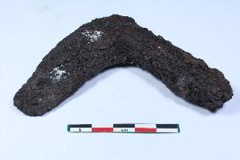 | Description / विवरण | Probably incrusted fragmentary Trowel having rough surface. |
