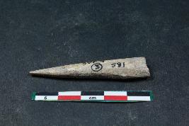 | Description / विवरण | Fragmentary biconical Point having rough surface. |
