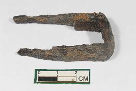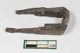 | Description / विवरण | A fragment of U-shaped clamp having rough surface. |