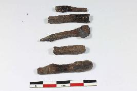 | Description / विवरण | Fragments of probably incrusted nails having rough surface. |