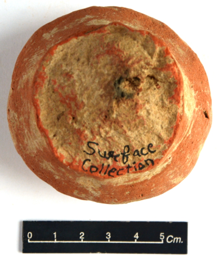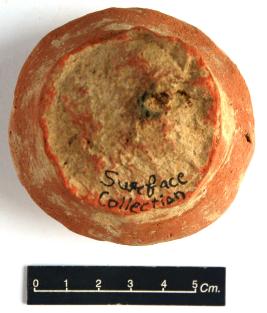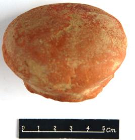 It is a fragment of a dabber made of terracotta having circular working surface.Rest of the body is missing.Existing object is in good state.