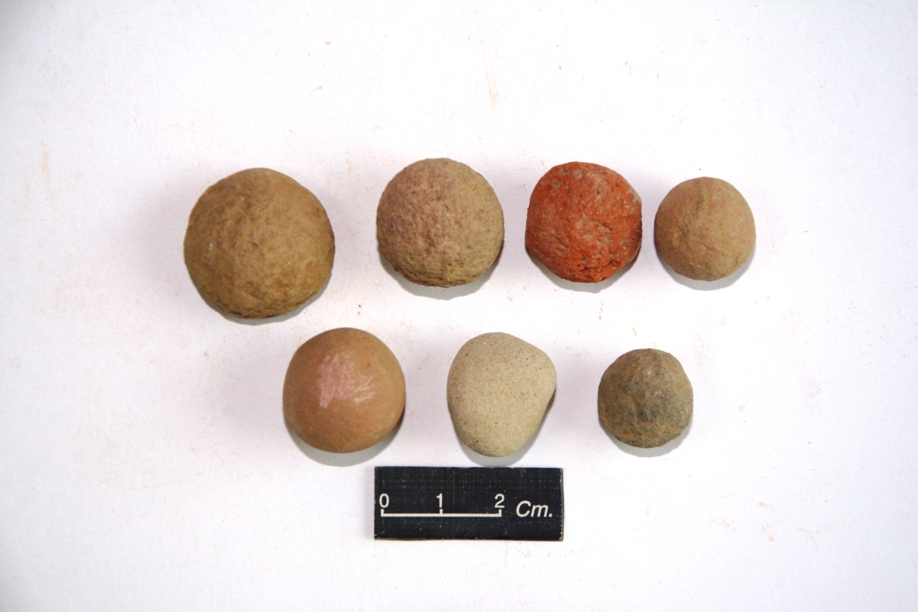Terracotta sling balls with polished surface. Surfcae is devoid of any decoration.