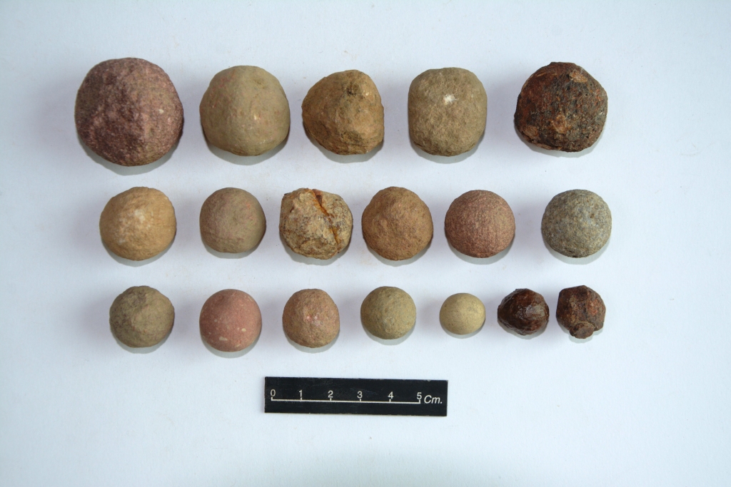 These are eighteen sling balls of different sizes with abrased surface. No surface treatment is visible on the surface.