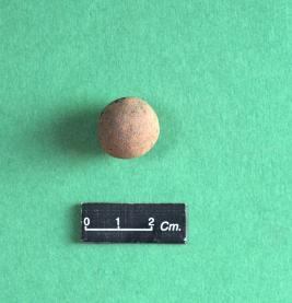 | Description / विवरण | Red sand stone sling ball; devoid of any treatment on the surface. |