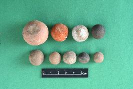| Description / विवरण | Sling ball made of terracotta and sandstone. Surface of all the ball are rough. It is devoid of any decoration. |