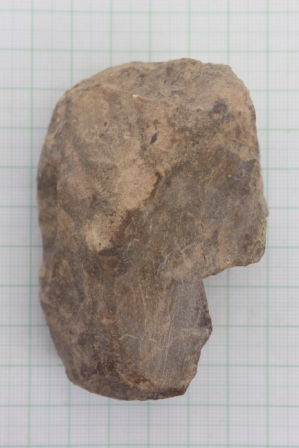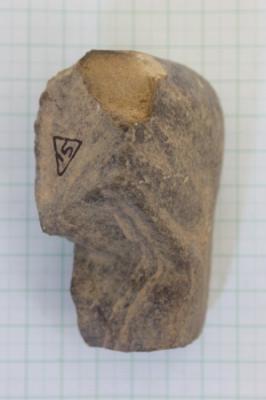 Fragment of a stone polisher probably for sharpening stone tools like axes and adzes. The sharpening platform is clearly visible.