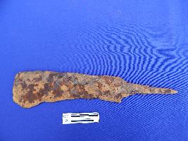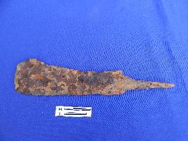 | Description / विवरण | It is a piece of the knife having a broad flat body in elliptical section and pointed tang in square section. |