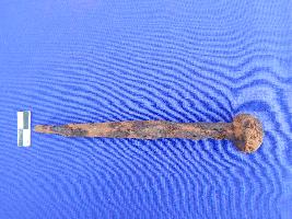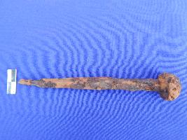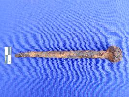 | Description / विवरण | It is an iron nail with a long body. Half portion of body from middle to pointed end is square and the rest of the upper portion is cylindrical. Its top portion is like a knob. |