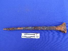 | Description / विवरण | Complete iron nail with long square section body with the pointed end at one end and flat top on another side. |