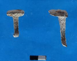 10a. Nails with flat and roughly circular Head, rectangular section with a tapering shank. 10b. Nails with flat and rectangular Head, rectangular section with a tapering shank.