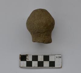 Handle of Grinder Holder of Grinder. It is in the shape of tip of phallus. Chisel mark can be seen in the surface. Lower part is missing.
