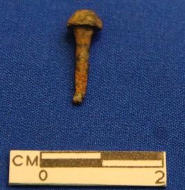 | Description / विवरण | A nail with rectangular thin section, round head with incised design of human bust having long hair and moustache. |