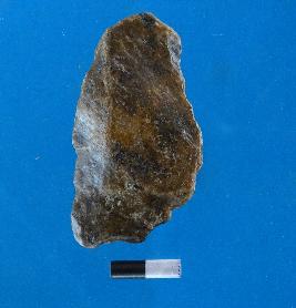 | Description / विवरण | Oval shape chert scrapper. Bear a sharp edges.Flaking mark on it. Sharp edge had been retouch |