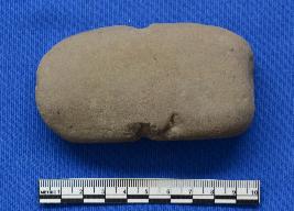 Rectangular in shape Grinding stone. At the center on both sides there is a constriction notch . Parallel to each other.