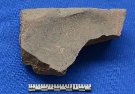 Flat grind stone. Broken partly. Smooth surface and curved depressions inside. Locally called as Lungtat , it is used for sharpening the Dao, axe etc