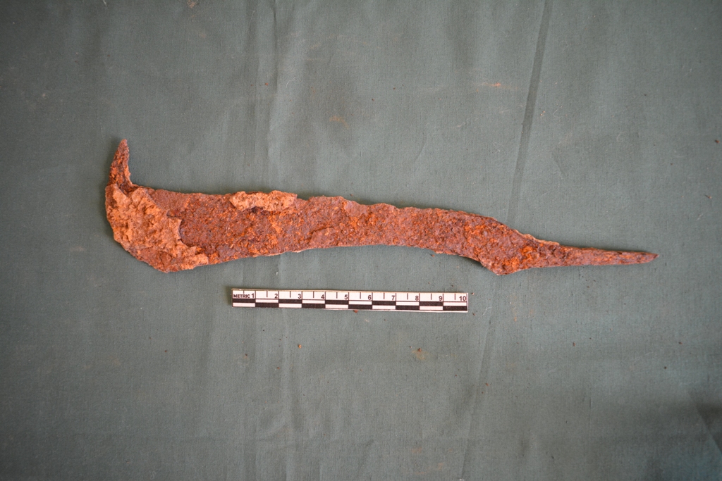 Billhook locally called as chem kawm is usually used for agriculture. Handle is straight, it has strong curve blades towards the end with pointed tip..