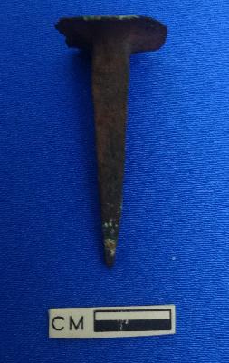 | Description / विवरण | A nail with square section, tapering to a pointed end and square topped flat head. |