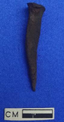 | Description / विवरण | A nail with square section, tapering to a pointed end and a broken square head. |