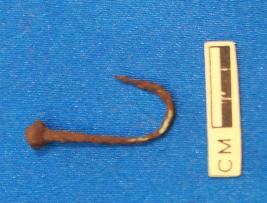 | Description / विवरण | Small fishhook , thin section with a knobbed head and a curved edge. |