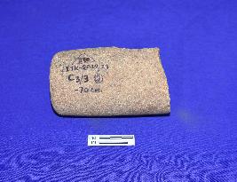 A sandstone mullar fragment made of fine grains of sandstone of plano-convex section .