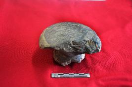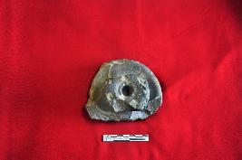 | Description / विवरण | A broken specimen of a terracotta dabber. It is made of medium to coarse clay and it is black in colour. It is having well formed handle at the top to provide a firm grip. It is having a flat base to retain the convexity of the finished vessel. |