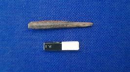 | Description / विवरण | A bone point, one end is pointed and other one is broken. The object is black in colour and section is circular. |