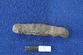 | Description / विवरण | A rusted iron nail, it has flat body and both of the ends are not pointed. |
