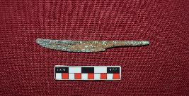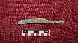 | Description / विवरण | A small knife with flat and thin section. The cutting edge is blunted and concave in shape. The point or tip part is curved and the elongated butt part of the knife may have inserted in to a handle |